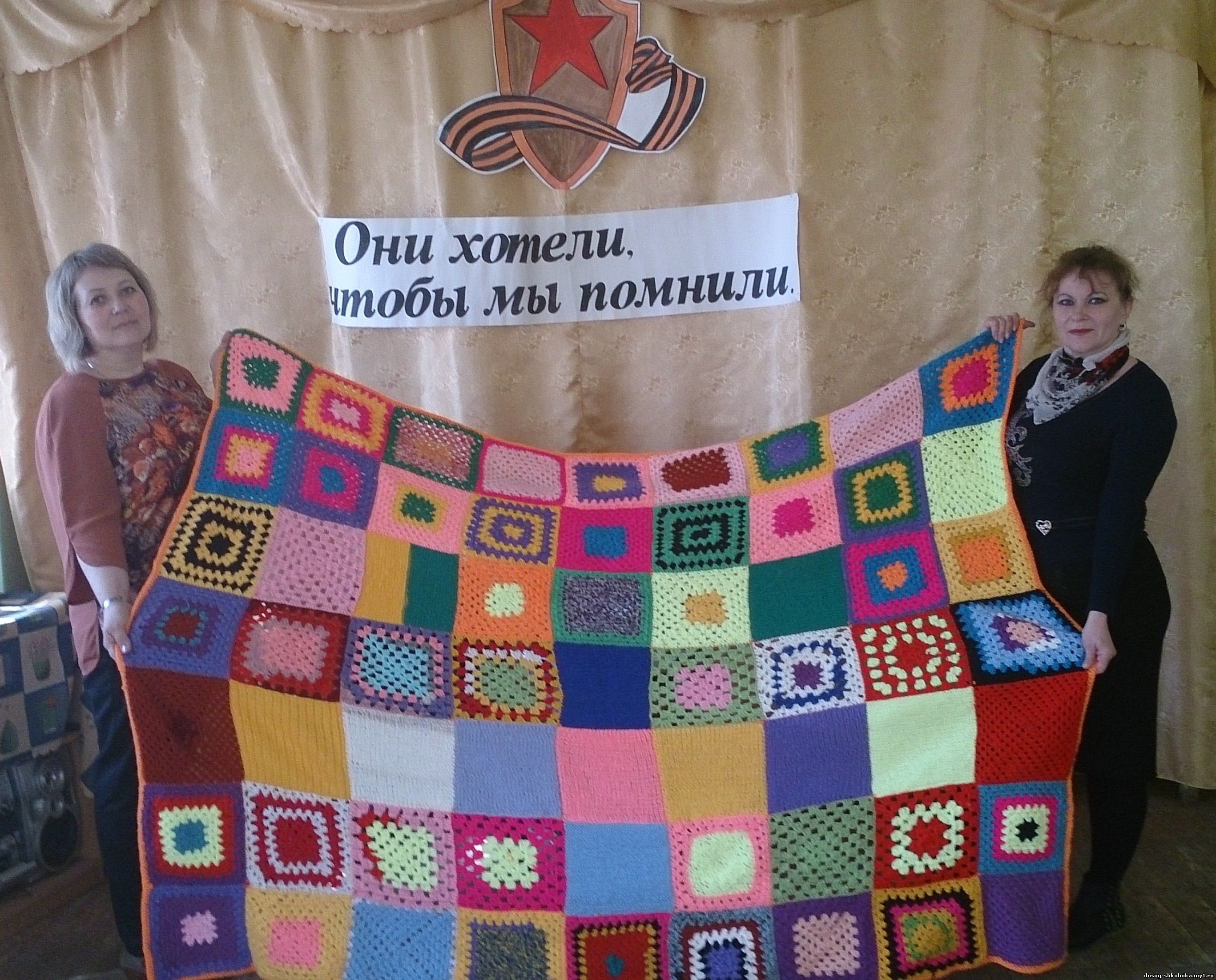- Творческое объединение старшеклассников, руководитель Иванова О.Н. приняли участие в изготовлении пледа для ветеранов.
